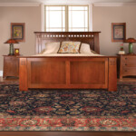 The Highlands bed is a spectacular bed. This bed features sturdy raised tapered posts with burned in laser motif and an overhanging prairie top. The frame and panel headboard is accented with pierced square. This bed is available in 4 configurations and 3 different sizes. The bed is available as shown with high footboard or with high footboard with storage underneath, or low footboard or low footboard with storage. This bed is available in quartersawn white oak or black cherry and many different finishes.