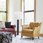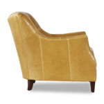 This tufted barrel chair from Huntington House has a lot of style.  This chair is available in both fabric or leather and features a hard wood frame and 8-way hand tied seat construction.  The tapered leg is available in many finishes and the arm features a graceful flair.  The hand done diamond button tufts make for a supportive back and a traditional flare.  Made in North Carolina.