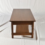 The three drawer cocktail table is available in quarter sawn white oak or cherry and is available in many different fine wood finishes. The drawers are dovetailed and will open on either side of the table. This table has dark copper hardware. Made in New York.