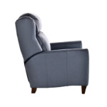 The Kipton recliner is an updated wing back recliner. This recliner is constructed using a hardwood and engineered hardwood frame, drop in coil seat construction. The recliner has a double bustle back for comfort and this recliner is a manual push back version.