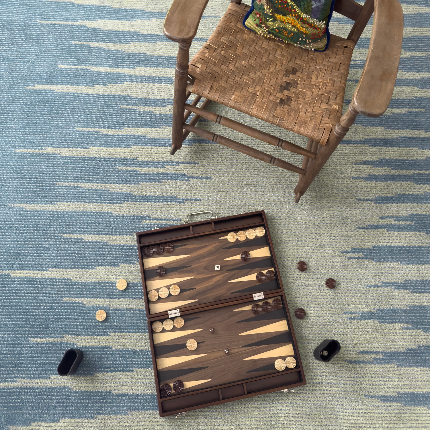 100% wool. Hand-tufted, 1/2″ cut and loop pile. Made in India. Woven cotton backing. Available in four colors: Indigo, Forest, Natural, and Spice.