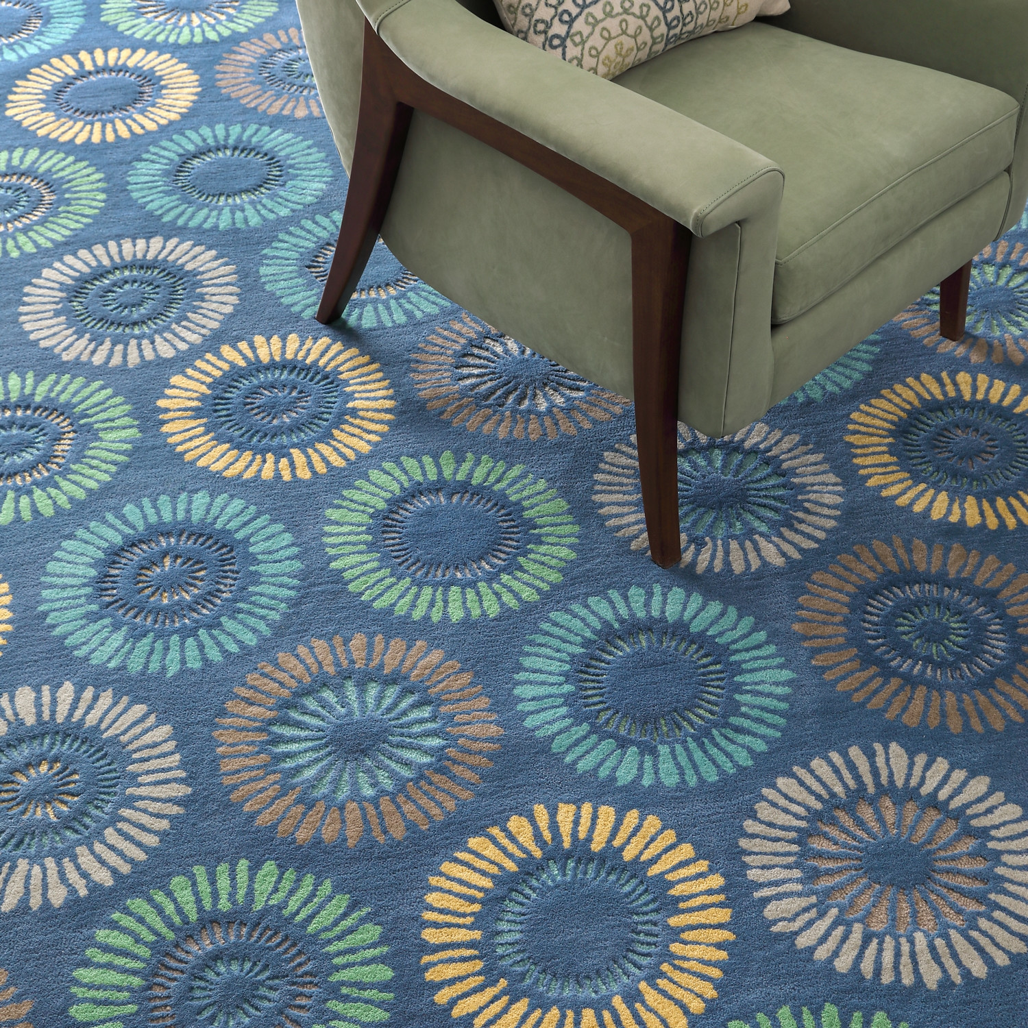 100% wool pile certified to the Responsible Wool Standard. Hand-tufted, 5/8″ cut and loop New Zealand wool pile. Made in India. Woven cotton backing.
