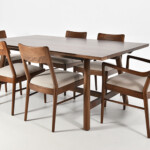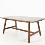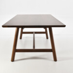 Dynamic in stance, this table thoughtfully showcases the natural beauty of walnut grain. The table base features discreet pull-out extensions to support leaves and is anchored by angled round leg posts that create a contoured silhouette. The 74″ table extends to 110″ with two 18″ leaves for larger gatherings.